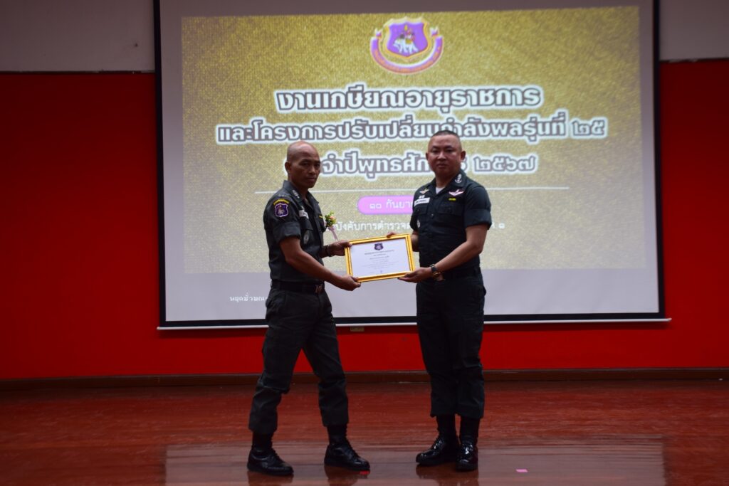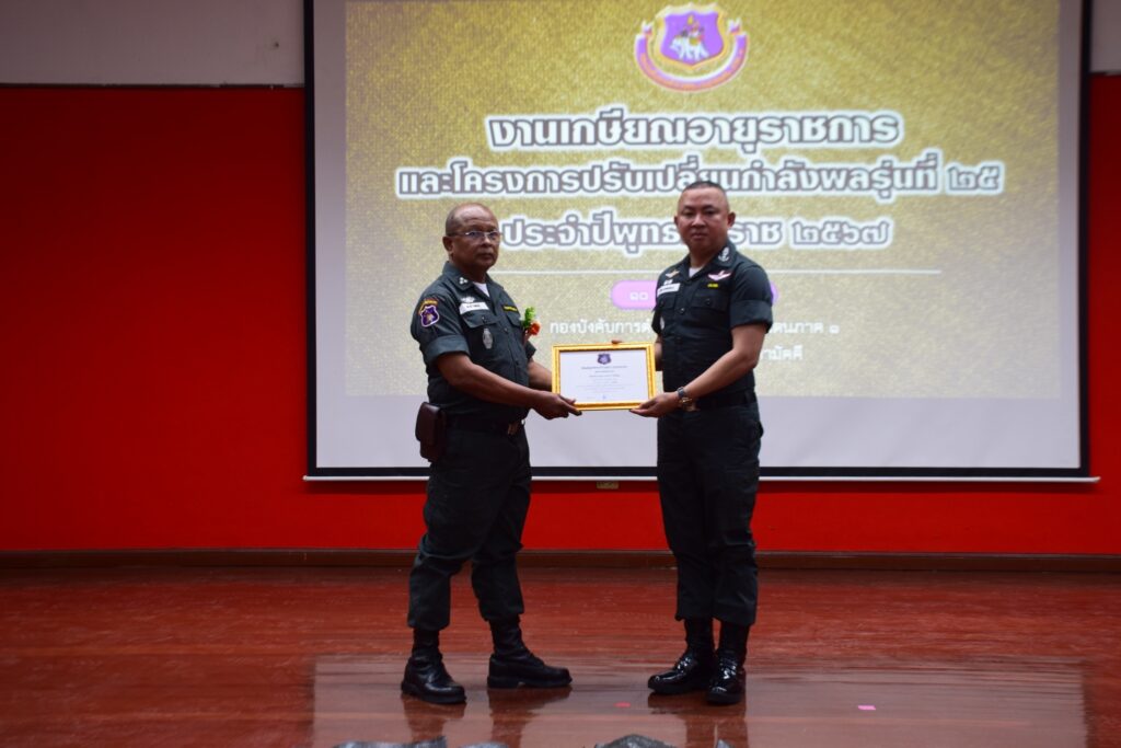 พล.ต.ต.บรรพต มุ่งขอบกลาง รอง ผบช.ตชด. เป็นประธานในพิธีงานเกษียณอายุราชการ และข้าราชการในโครงการปรับเปลี่ยนกำลังพลรุ่นที่ ๒๕ โดยมี พล.ต.ต.จักรเพชร เพชรพลอยนิล ผบก.ตชด.ภาค ๑ , พ.ต.อ.กรธวัช สวัสดิ์โรจน์ รอง ผบก.ตชด.ภาค ๑, พ.ต.อ.ทวีศักดิ์ จินดาศักดิ์ รอง ผบก.ตชด.ภาค ๑ พร้อมด้วยข้าราชการในสังกัดกองบังคับการตำรวจตระเวนชายแดนภาค ๑ และข้าราชการตำรวจที่เกษียณอายุราชการ จำนวน ๓๑ นาย รวมทั้งสิ้น ๑๐๐ นาย ณ ห้องประชุมรักสามัคคี กองบังคับตำรวจตระเวนชายแดนภาค ๑